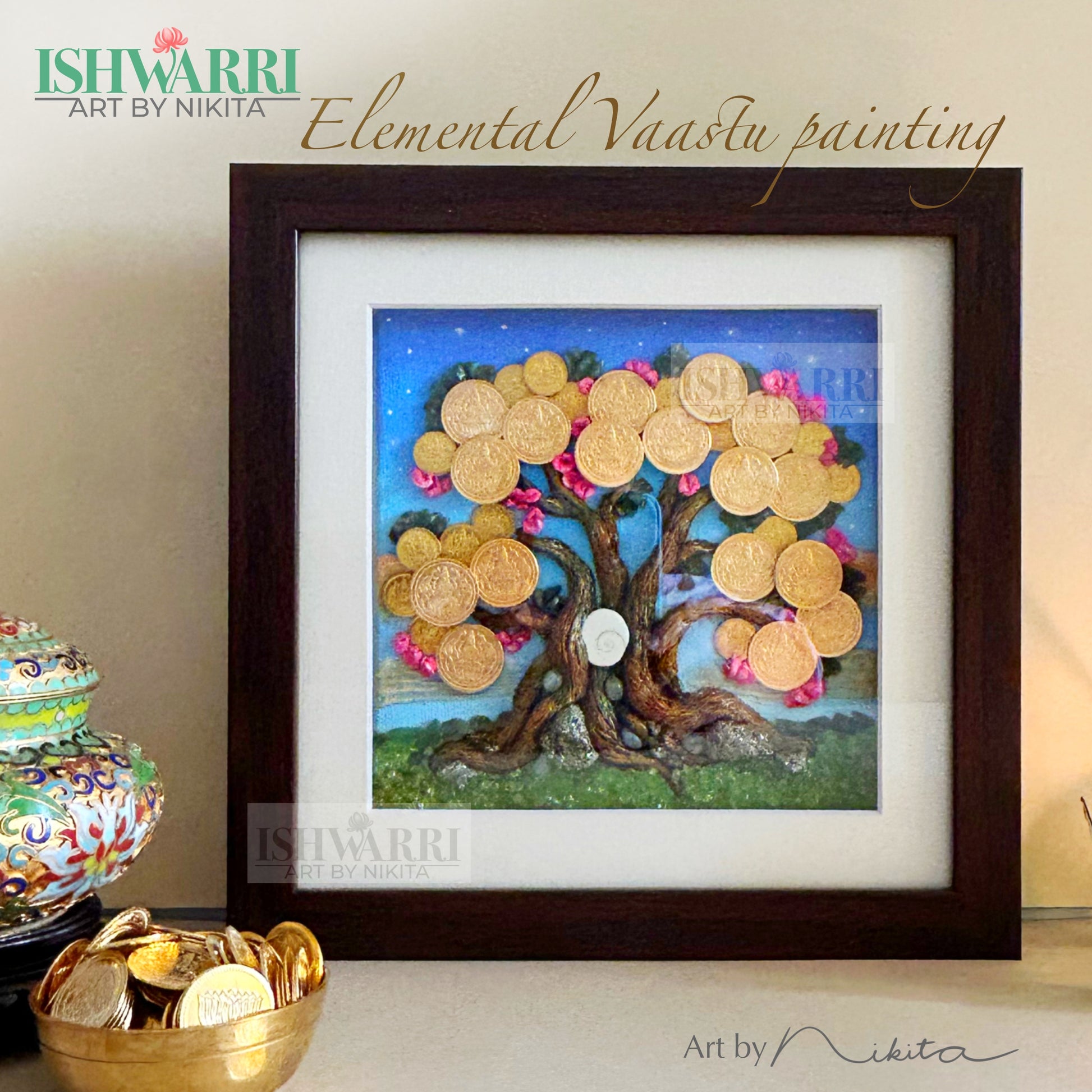 This elegant creation by Ishwarri Art by Nikita, in collaboration with an AstroVastu expert, goes beyond décor to embody the essence of abundance and harmony. Enriched with genuine crystal elements such as Pyrite, Garnet, Blue Lace Agate, and Amber, each carefully selected for its distinct energetic properties, this piece radiates balance of beauty and intention.
